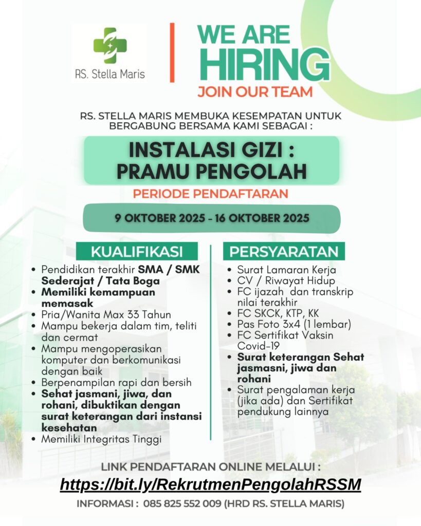 Hai Sahabat Sehat, RS. Stella Maris membuka kesempatan untuk bergabung bersama kami sebagai :